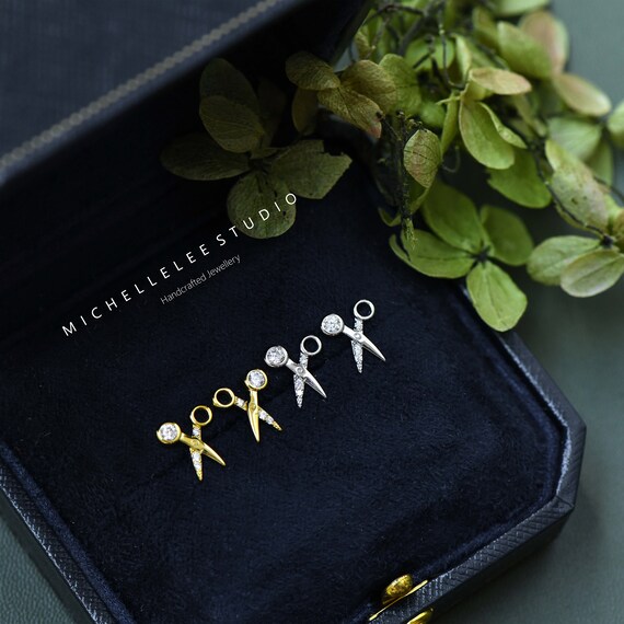 Tiny Scissors Stud Earrings With Cz Crystals Sterling Silver Etsy Canada